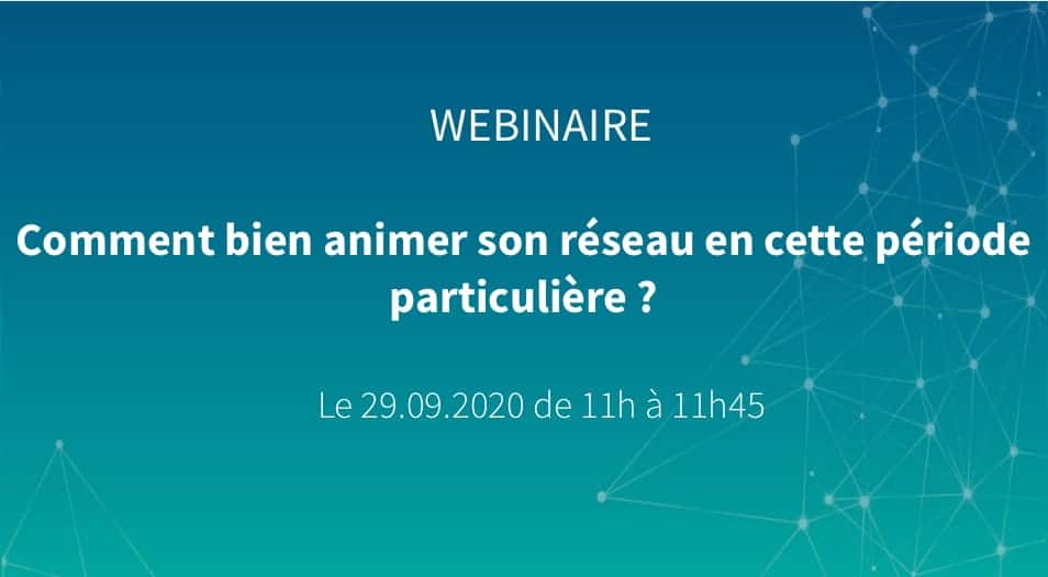L’animation du réseau est l’un des enjeux majeurs à toute entreprise souhaitant entreprendre au mieux la reprise économique. Lors de ce webinaire qui aura lieu le 29 septembre de 11h à 11h45, nous aborderons les thèmes suivants :